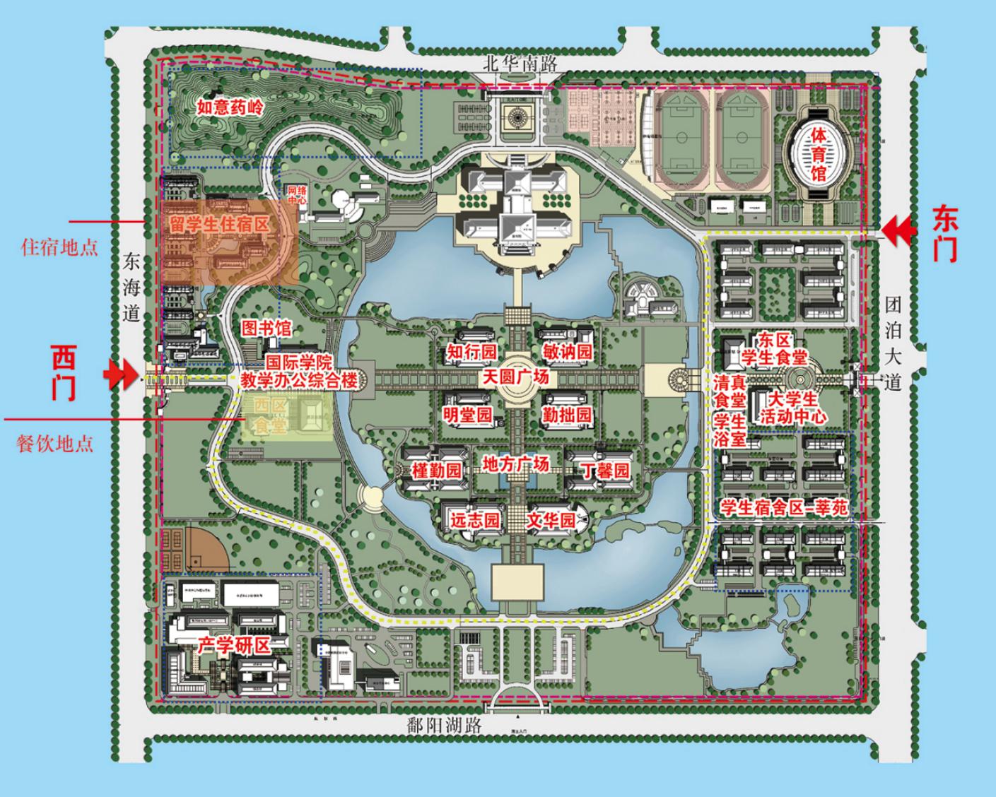 餐饮地点在西区若邻餐厅,住宿地点在留学生公寓区