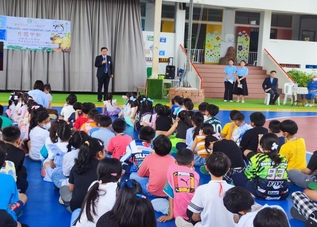 9月29日,我校孔院走进泰国派丽卡雅小学,与泰国师生一起庆祝中国传统节日——中秋节。此次活动共计300余人参加。皓月当空,思意正浓,在热烈的节日气氛中,孔院中泰方院长和派丽卡雅小学校长分别致词。在活动环节,孔院老师们通过播放视频,为小学生们介绍了中秋节的习俗与来历,并根据视频内容对他们提出问题,鼓励小朋友们积极用汉语回答老师的问题。本次活动同时设有剪纸、制作中国结、绘画和点心月饼展台等环节。