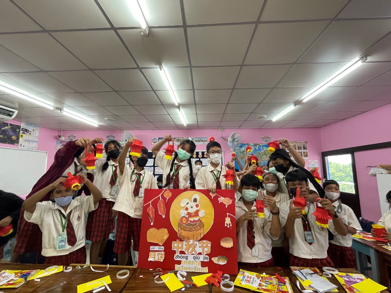 9月25日,我校孔院于泰国竭诚小学举办以“望月话美好,佳节人团圆”为主题的孔子学院日中秋活动,共计300余人参加此次活动。中医孔子学院志愿者张燕改、孙佳怡向泰国的小学生们介绍中秋节的来历以及中秋节的习俗,共同制作中国灯笼并拍照留念。活动结束后,小朋友们说希望明年中秋节可以有机会到中医孔院体验中秋节的文化习俗。
