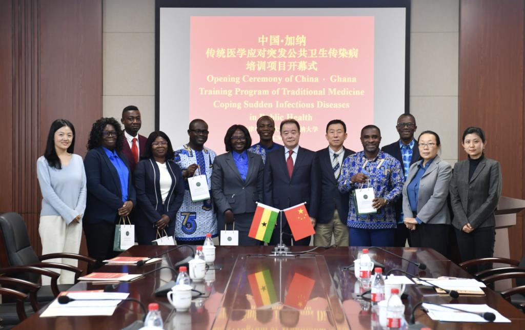 11月9日,由教育部主办,天津中医药大学与非洲加纳大学共同承办的教育部“中非高校20+20合作计划”—“中国•加纳传统医学应对突发公共卫生传染病培训项目”举行开幕式。我校副校长王耀刚、国际教育学院院长金军以及来自加纳大学、加纳相关医疗机构及科研机构的专业领域相关学者出席会议。
