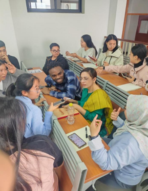 10月25日,共建营里的汉语国际教育本科生针对留学生的语音偏误进行指导,在和中国学生的交流实践中,不仅帮助了留学生掌握准确的语音发音,还极大提高了其语言表达能力和交际能力。留学生们同中国学生的跨文化融合,极大地促进了其更快更好地适应中国文化,也开启了中国学生了解其他国家文化的窗口。