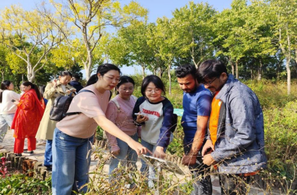 10月15日,在重阳佳节来临之际,共建营举行了一场浓郁的“中华+中医”文化体验活动。来自尼日利亚、泰国、美国、巴基斯坦、马来西亚等世界各国的留学生代表齐聚一堂,品菊花茶,登药山、认识中药植物等,感受中国传统节日魅力。活动共分“思念”“陪伴”“传承”三大篇章,活动现场,文传学院汉语国际教育专业学生给留学生进行讲解,“重阳佳节是中国传统节日之一,这天大家会一起登高远眺,插茱萸、赏菊花,免灾避祸,有期盼生命长久、健康长寿的寓意。”