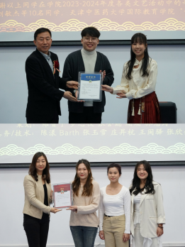 晚会伊始,王耀刚副校长首先给同学们送出新年祝福,他在致辞中指出,“青年最富有朝气、最富有梦想,世界的未来属于年轻一代。大家不远万里来到天中医求学,希望同学们在学习中医药文化的基础上,更好地认识理解中国的历史和未来。今年恰逢春节申遗成功,王校长祝愿老师和同学们新春快乐、万事如意”。随后,国际教育学院院长金军和学院党总支副书记王丽莉分别为国际教育学院文体工作小组的同学们授予荣誉称号和颁发新一届小组成员聘书。