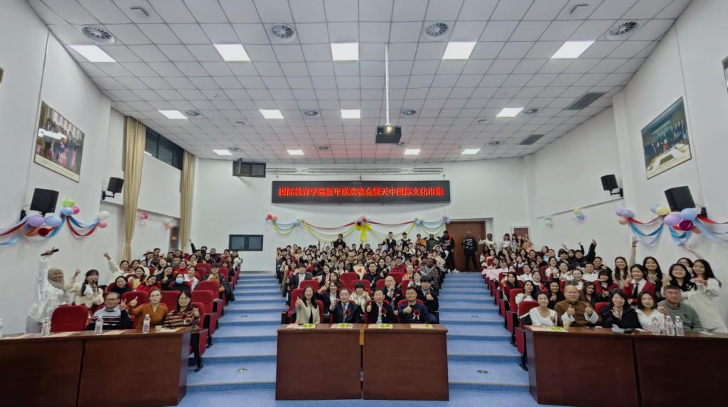 元春始风华,万象启新朝。12月27日,我校国际教育学院隆重举行“秀‘外’汇‘中’,迎禧接福”2025年新年联欢晚会暨天中国际文化市集活动,来自马来西亚、缅甸、美国、巴基斯坦、尼日利亚、尼泊尔等20个国家的来华留学生以及文化健康与传播学院、体育健康学院的近300名中外学生同台联欢、互致祝福、共话友谊。天津中医药大学副校长王耀刚、天津健康产业国际合作示范区管委会相关负责人、文化健康与传播学院、体育健康学院以及国际教育学院相关领导老师出席活动。