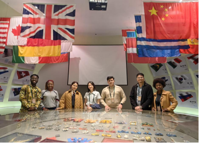 在参观研学环节,师生们沿着"奥运之路" 展厅,驻足凝视萨马兰奇先生捐赠的 2000 余件珍贵藏品:亲笔书信、奥运火炬、赛事徽章等展品,生动再现了这位 "现代奥林匹克运动改革家" 的奋斗历程。在互动体验区,留学生们饶有兴致地通过 VR 技术 "亲临" 奥运现场,在模拟火炬传递中感受竞技魅力。
