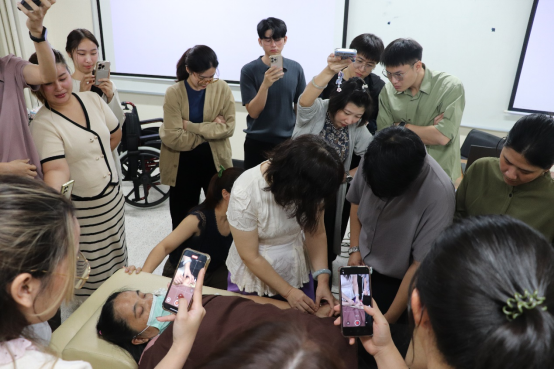 培训期间,温景荣副教授围绕“醒脑开窍针刺法”“不孕不育的中医辨证治疗”“肥胖症的中医认识与针药并用”及“针灸在痛症中的应用”等专题进行了系统讲授。培训最后一天,温教授组织学员进入实训室开展针法实操,结合临床病例进行现场演示与讲解,有效提升了学员的实践应用能力。