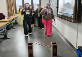 作为学院推进跨文化教育的重要实践载体,本次活动得到了两院的精心筹备与专业支持,从活动流程设计到文化内涵解读提供专业支撑,为中外学子搭建起平等对话、深度交流的优质平台。活动现场,汉语国际教育的同学们以生动的传说故事溯源重阳节“敬老孝亲”的文化内核,详解登高、赏菊、佩茱萸等传统习俗的文化寓意,让留学生直观感受中华传统文化的精神底蕴与生活智慧,赢得现场阵阵掌声。