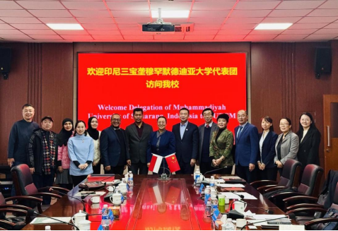 校长高秀梅教授首先致欢迎辞,并详细介绍了学校的办学历程、学科优势、发展定位以及在中医药现代化、国际化人才培养等方面的探索与成就。随后,三宝垄穆罕默德迪亚大学副校长穆·优素福博士介绍了该校的办学历史、在健康科学相关领域的影响力,并说明了本次访问的合作意向。双方在人才培养、教师互访、科研及医疗合作等多个维度达成共识。我校副校长邱峰教授与三宝垄穆罕默德迪亚大学副校长优素福博士签署了合作意向书,为双方合作奠定了基础。